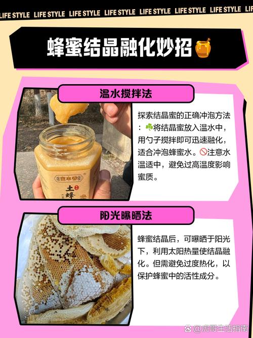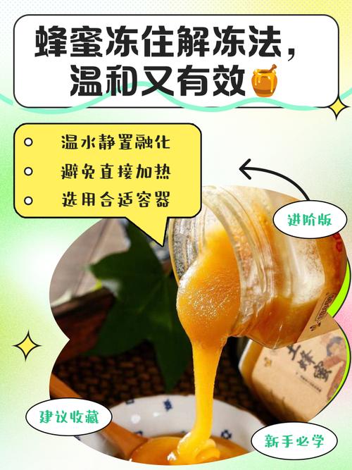 〖One〗、蜂蜜冻住后,可以采用以下两种方法进行解冻:温水解冻法:将冻住的蜂蜜放入一个密封性较好的罐子中。准备一盆50度左右的温水,注意水温不宜过高,以免破坏蜂蜜中的营养成分。将装有蜂蜜的罐子置于温水中,让蜂蜜慢慢融化。这种方法温和且安全,可以确保蜂蜜的口感和营养价值不受影响。