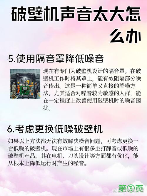 使用隔音材料 购买隔音棉,并按照家中破壁机的尺寸进行裁剪。将裁剪好的隔音棉套在破壁机上,这样可以有效地降低破壁机工作时的噪音,通常可以降低20~30分贝的声音。这种方法简单易行,效果显著。预处理食材 在使用破壁机之前,可以将需要打磨的食材用水泡软,特别是对于五谷等坚硬类的食材。