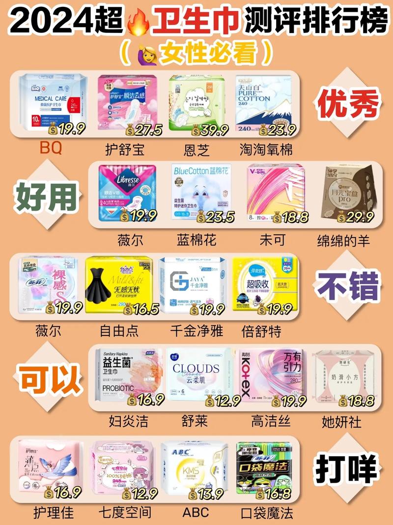 2024卫生巾前十品牌排名榜,卫生巾哪个牌子好