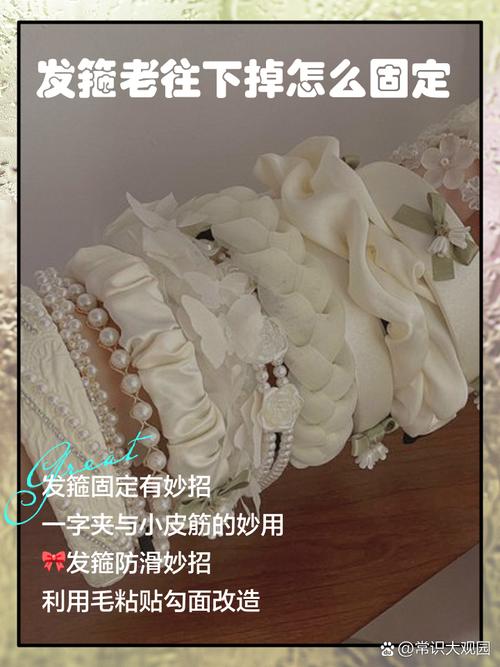 头发太顺或者发箍太松:确保发箍贴合头部,头发不太平滑的话,可以先用发蜡或者发胶总结一下。 发箍打滑:使用黑发夹在发箍下方固定几处,以增加稳定性。 发箍怎样戴稳:如果发箍一直往下滑,说明可能太大,可以调整紧度或者用发夹辅助固定。