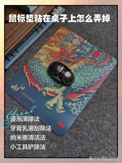 使用酒精擦拭 用干净的抹布蘸取适量的酒精,然后轻轻擦拭鼠标垫粘在桌子上的部分。酒精的溶解性可以帮助去除粘性物质,从而缓解鼠标垫粘桌子的现象。擦拭时要注意力度,避免损坏桌面或鼠标垫。洗洁精兑水擦拭 将洗洁精与水按一定比例兑好,搅拌均匀。