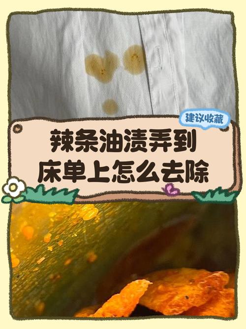 〖One〗、清洗床单上的辣条油渍,可以采取以下几种方法:牙膏法:步骤:在辣条油未干之前,尽快在油渍处涂上一点牙膏。操作:轻轻搓洗几次,油渍通常可以消除。清洁剂法:步骤:根据油渍的范围,在油渍上滴上相应数量的清洁剂。操作:静置5分钟后,使用清水搓洗,油渍即可去除。食盐法:步骤:将食盐均匀涂抹在油渍处。