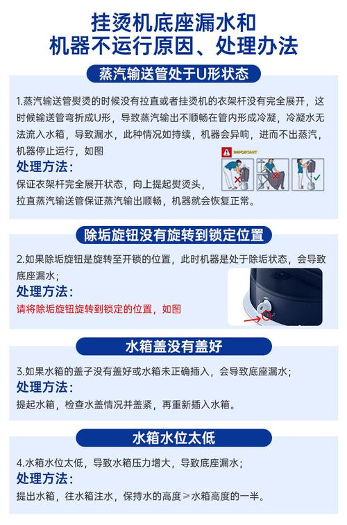 〖One〗、面对贝尔莱德挂烫机出现的问题,首先需排查出气孔是否堵塞。若堵塞,可以尝试倒白醋清洗,清除内部积淀。检查进水口的金属片是否因负离子过期导致阻水,可更换金属片解决问题。放水箱时应注意位置,确保水箱出水部位顺畅,避免水无法排出,蒸汽无法产生。
