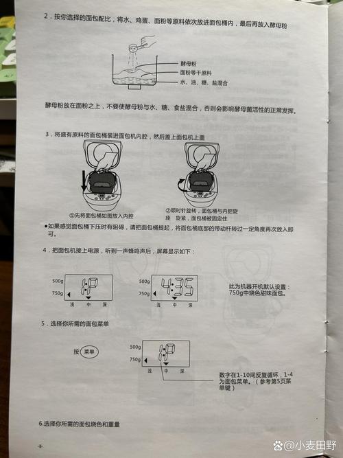 使用步骤近来大多数的面包机其使用的方法都是大同小异的,我们步要在面包桶里倒入水,加辅料,倒入面粉,覆盖住水面,在面粉上按一小洞,倒入酵母粉。