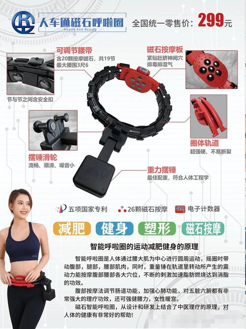 〖Five〗、智能呼啦圈能够提供详尽的运动数据,包括消耗的卡路里、转动的次数、持续时间、转速以及腰围的变化等,有助于用户更好地管理自己的身体健康。 呼啦圈作为一种有氧运动,通过持续的旋转动作,能有效锻炼腰部及腹部肌肉,实现减肥效果。它是通过与身体的摩擦产生热量,从而达到燃烧脂肪的目的。