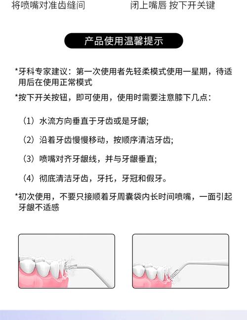 〖Two〗、一般群体,建议6个月换一次;牙周炎、牙龈红肿群体比较好是3个月换一次。上面就是小编分享的关于冲牙器怎么用的全部内容,希望对你有所帮助。