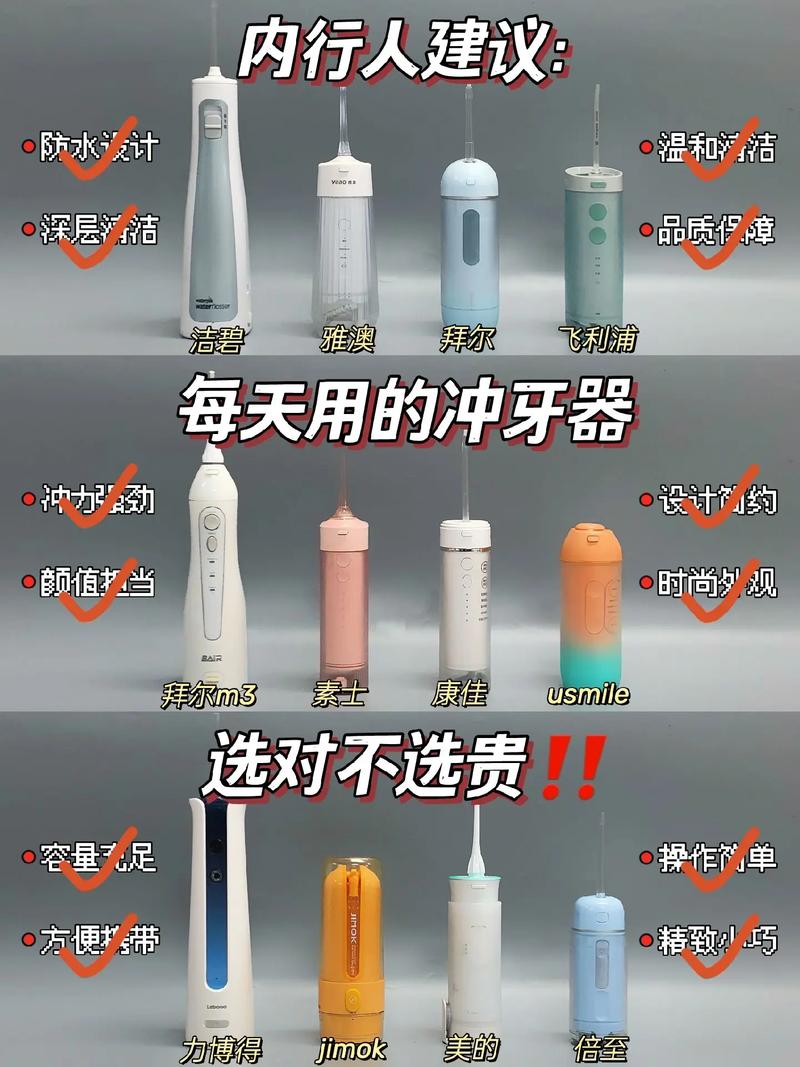 〖Two〗、许多新手在使用冲牙器时都会有一个共同的问题:冲牙器的喷头多久需要更换一次?其实,一般建议3『6』个月更换一次喷头,这主要取决于使用频率。频繁使用的情况下,喷头可能需要更频繁的更换。冲牙器因其强劲的清洁力度而深受大家喜爱,但使用时需要注意,过度使用可能会损伤牙床或牙龈。