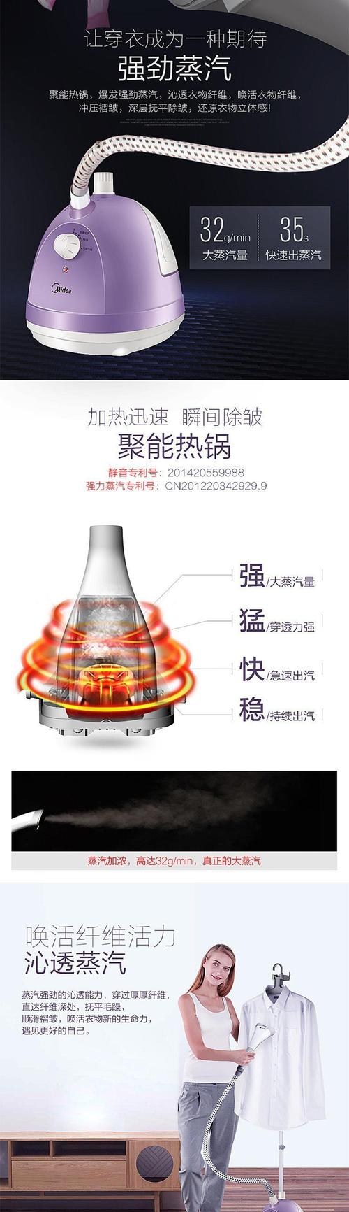〖Three〗、它的蒸汽调节有两个档位,一档比较适合春夏较薄的衣服,二档则比较适合秋冬的厚衣服。