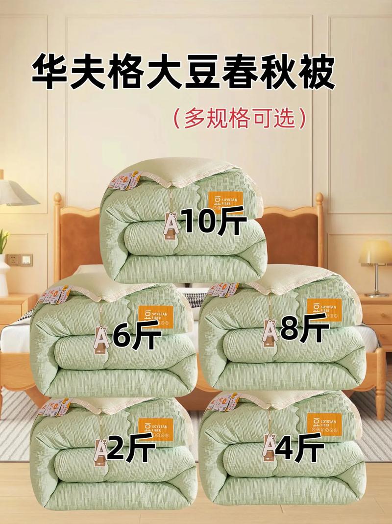 大豆纤维被的重量选取建议 选取大豆纤维被的重量,需结合使用季节、个人喜好及保暖需求。一般来说,春秋季节选取3『4』斤的大豆纤维被较为合适;夏季可以选取更轻薄的,约2斤左右;冬季则建议选取稍重的,5『6』斤可确保保暖效果。