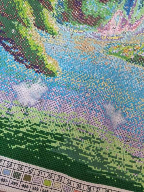 〖Five〗、印布十字绣洒水的办法:如果水溶笔颜色掉了千万别用水洗,因为会缩水,如果现在洗的话,绣完的部分会缩水,没绣的部分缩水后再绣会和之前的不一样。建议晾干后再用水溶笔打格子继续绣就好了。洒上水后不要用别的东西擦,容易掉色,可以用卫生纸吸吸水。晾干后继续绣就可以了,基本不会有影响。