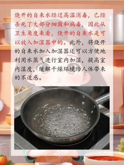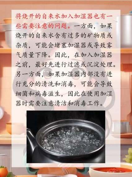 〖Two〗、烧开的自来水是否可以放入加湿器中需要具体情况具体分析。如果自来水中含有过多的矿物质或杂质,需要进行过滤或沉淀处理;如果使用特殊的加湿器或当地自来水质量较差,需要根据具体情况选取合适的水源;在使用加湿器时需要注意室内湿度、清洁和消毒、使用安全等问题。