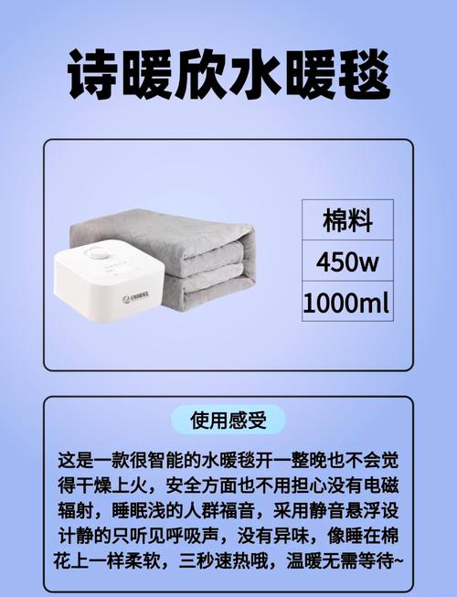 〖Two〗、水暖毯作为新一代的电热毯,通过水循环取暖,相比传统电热毯更为安全。它能够实现恒温、无电磁辐射等优点。关于水暖毯的适宜温度,建议控制在30『6』0摄氏度之间。睡前预热时,温度可设定为60摄氏度,而在睡眠期间则调至30摄氏度。过高的温度可能影响健康,而过低则无法达到舒适的保暖效果。
