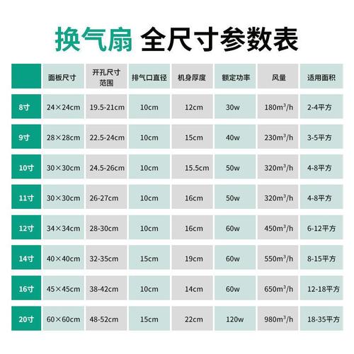 〖One〗、排风扇的尺寸因型号、品牌和用途的不同而有所差异,常见的尺寸有8寸、9寸、10寸等。以下是关于排风扇尺寸的详细解释:排风扇的尺寸种类 排风扇的尺寸一般以其直径来衡量,常见的尺寸如8寸、9寸、10寸等,对应的是大约20厘米、23厘米和25厘米的直径。