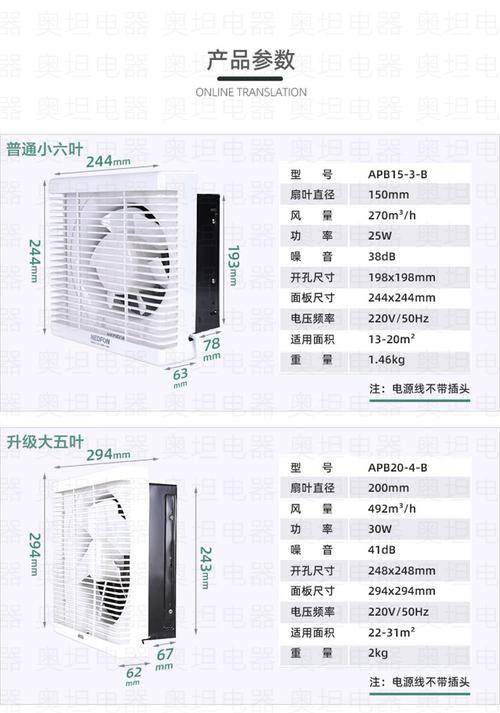 〖Four〗、普通排风扇的开孔尺寸为25厘米乘以25厘米,外框尺寸为35厘米乘以13厘米乘以35厘米。这种排风扇适用于一般家庭或办公场所,具有良好的通风和排气效果。封闭式排风扇的尺寸为30.5厘米乘以30.5厘米,其设计更为紧凑,适用于空间有限的场所。