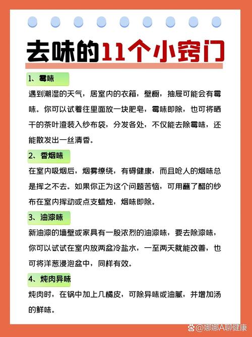 通风去除法。在新房装修后,一定要多开窗通风,因为只有这样才能将屋内的细菌,异味排散到屋外,还可以将屋内的甲醛等污染物都排放到室外,有效的减轻室内的污染。食醋法。用面盆或者小水桶之类的盛器打满凉水,然后加入适量食醋放在通风房间,并打开家具门,这样可吸收消除残留异味。水果除味。