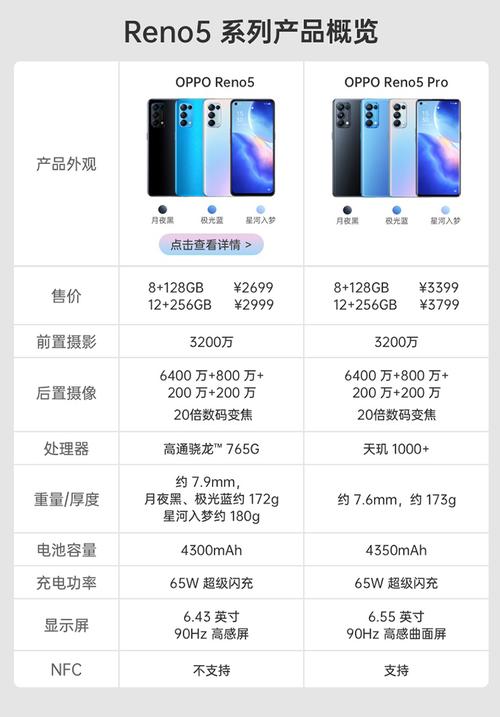 在续航能力方面,opporeno5配备4300毫安时电池,不支持NFC功能。opporeno5pro的电池容量提升到了4350毫安时,且支持NFC功能。这些差异在实际使用中将影响设备的性能、流畅度和使用体验。
