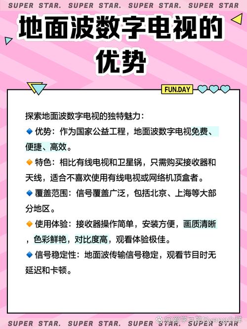 〖Three〗、首先,地面波电视接收器的一大优点是信号稳定。由于其信号传输方式较为直接,不易受天气和环境因素影响,因此在一些特定条件下,其信号质量更为可靠。其次,地面波电视接收器能够提供高清的图像质量。由于地面波电视的传输速度快,因此可以呈现出更为清晰和流畅的画面,为观众带来更好的观影体验。