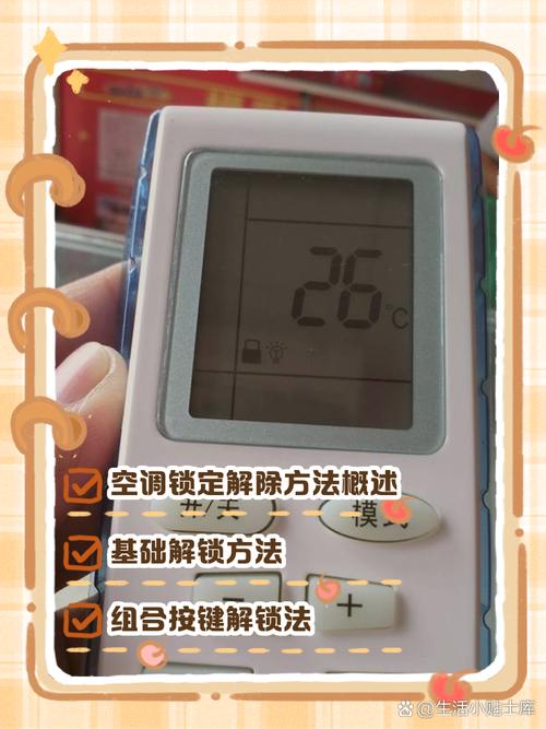 〖Three〗、空调遥控器按了没反应的解锁方法有以下几种:按键操作解锁:同时按住遥控器的温度“”键,持续2秒后松开,即可完成开锁和关锁的设置。这种方法适用于很多带有上锁功能的遥控器。断电恢复解锁:取下遥控器背面的电池,等待十分钟后重新安装,遥控器将恢复到原厂设置,解锁状态。