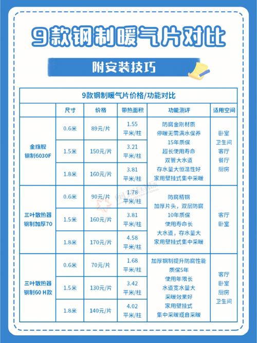 〖Four〗、暖气片一柱的安装费用因多种因素而异。一般来说,安装费用会涵盖材料成本、人工费用以及可能的配件费用等。具体的费用范围需要根据不同地区、不同品牌以及不同的安装需求来评估。但大致上,暖气片安装费用在每柱几百元至数千元不等。