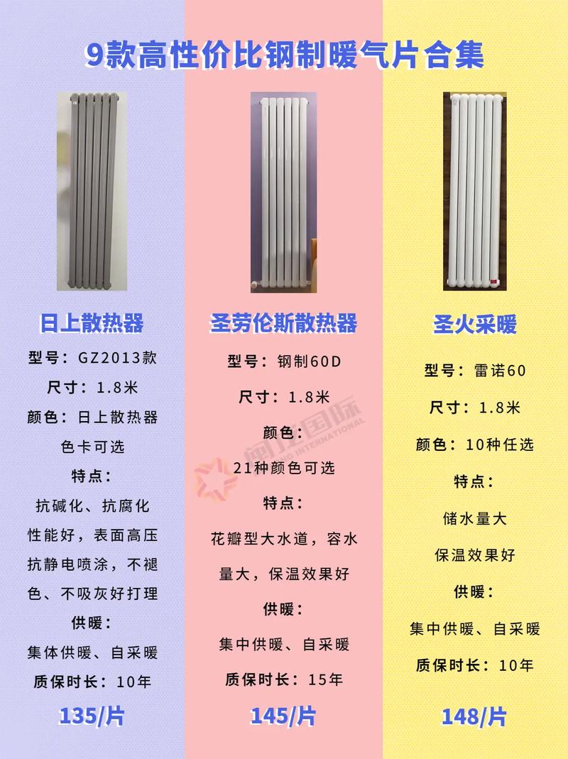 〖Three〗、暖气一柱的费用因材质、品牌、尺寸等因素而异。以市场上常见的钢制暖气片为例,其费用大致在几百元至数千元之间。具体费用还需根据具体型号和购买数量来确定。以下是关于暖气费用的一些 暖气材质影响费用:暖气有多种材质,如铸铁、钢制、铝制等。不同材质的暖气在费用上会有所差异。