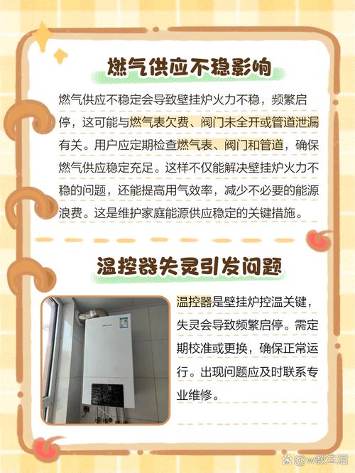 其中,在壁挂炉小火情况下,常见的故障有以下几种:气体供应不足:当壁挂炉小火时,如果发现火苗不够大或者有明显的颜色变化,那么很有可能是由于气体供应不足造成的。这种情况一般需要检查气管、气源阀门等部件,确保气体完全流通。