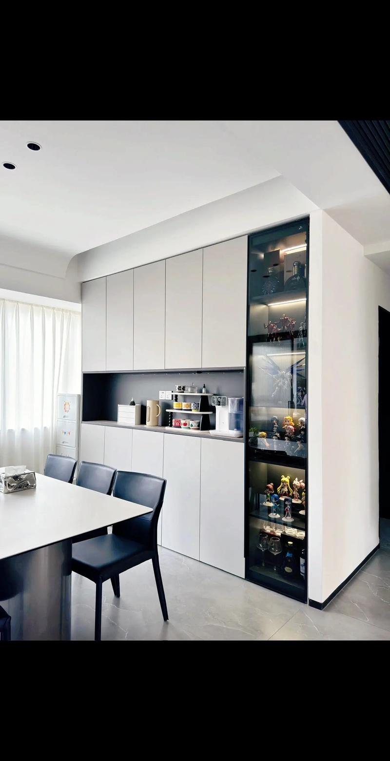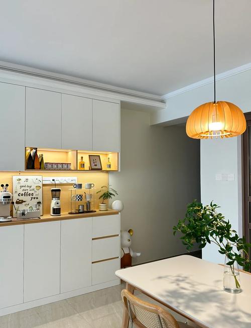 〖Three〗、餐边柜一般放的小家电包括微波炉、电饭煲、热水壶、烤盘、直饮机、破壁机、烤箱、咖啡机等。微波炉和电饭煲:放在餐边柜上方便热菜和盛饭,减少频繁进出厨房的麻烦。热水壶、破壁机、直饮机和咖啡机:这些家电的放置使得喝水、喝咖啡或果汁更加方便,提升餐饮体验。