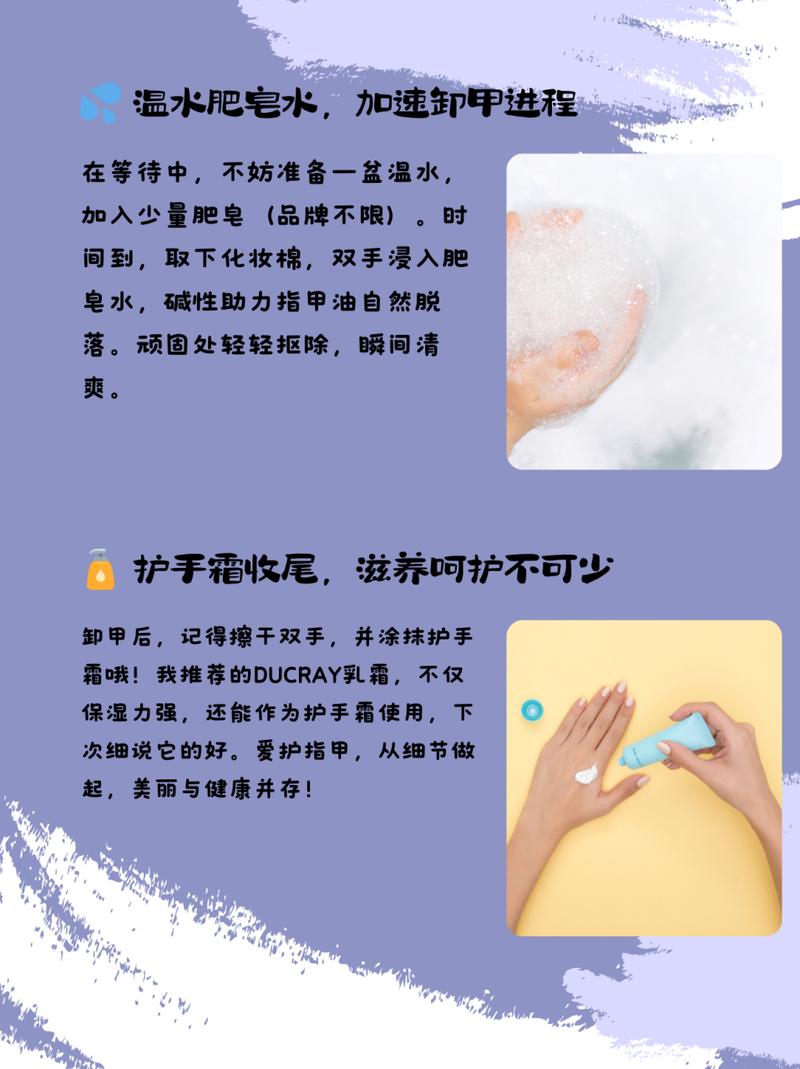 洗甲水洗指甲油:指甲油可以使用洗甲水来清洗。洗甲水中含有的挥发性较强的有机溶剂,能够帮助去除指甲油。卸妆油洗指甲油:指甲油可以使用卸妆油来清洗。卸妆油中含有油脂和乳化剂,能够帮助与指甲油中的油污融合,然后将其水乳化,最终清洗掉指甲油。
