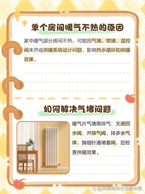 〖Two〗、原因:采暖系统的送、回水管道与整栋楼的送、回水管道接反,导致暖气片受热不均。解决方案:检查并重新安装管道。综上所述,当发现暖气有一个屋子不热时,可以从以上几个方面进行排查和解决。如果问题依旧存在,建议联系专业的暖气维修人员进行检查和维修。