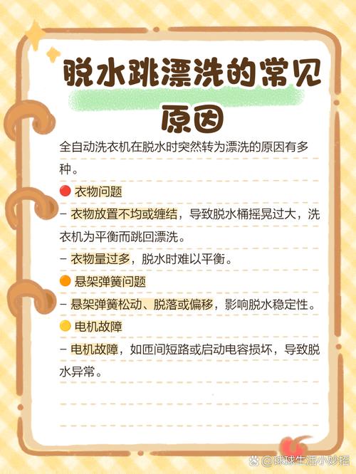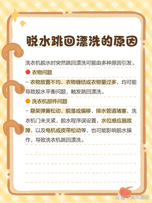 〖Two〗、首先,当脱水桶内的衣物放置不均或摇晃过大时,洗衣机会智能地重新调整,通过跳回漂洗来重新平衡。其次,衣物在脱水过程中可能会缠结在一起,这也会导致洗衣机自动跳回漂洗以重新分布衣物。此外,当衣物量过大时,脱水过程容易出现不平衡状况,此时洗衣机会自动进行衣物平衡调整。