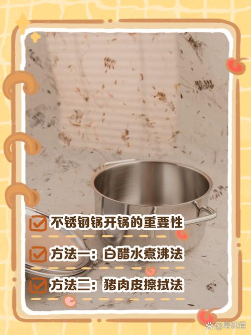 〖Four〗、不锈钢开锅的最佳方法包括清洗、白醋煮沸、润锅和静置等步骤。首先,需要彻底清洗锅具,去除油污和杂质。可以使用洗洁精和温水清洗,确保锅的里里外外都干净。这一步是为了后续的开锅过程做准备,同时也能保证烹饪时的卫生。下面,倒入适量的白醋和温水,然后开火煮沸。