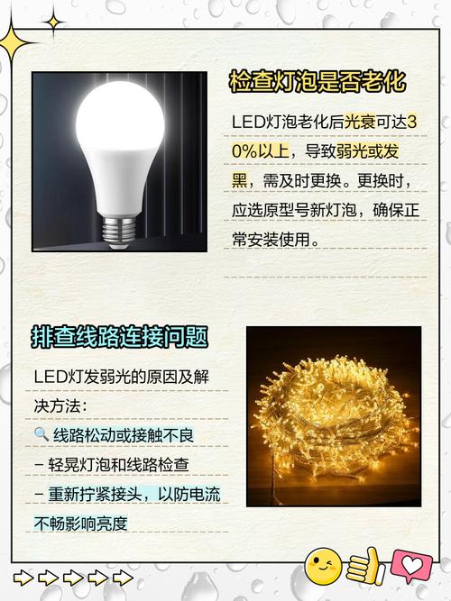 〖Two〗、可以尝试用良好的led灯进行更换,以检查是否恢复正常。因此,当遇到led灯打开只发弱光不亮的情况时,应首先检查电压稳定性、线路完整性和led灯本身是否损坏,而不是直接归因于受潮。