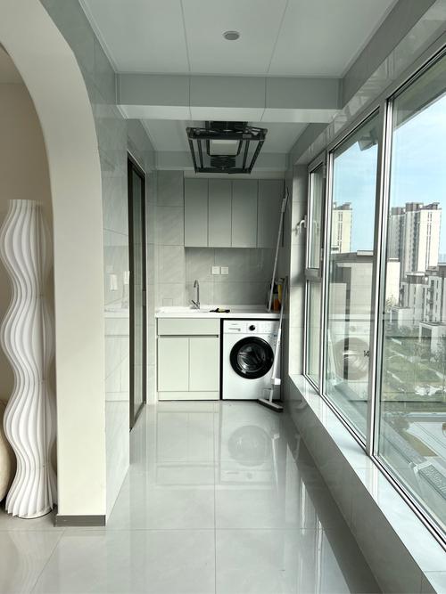 休闲阳台基本与客厅区域相连,是以休闲、娱乐互动为主的空间,应该与客厅一样,地砖高度保持齐平。可以考虑地砖通贴,视觉效果会比较流畅、大气。也正因为客厅与休闲阳台互动较多,走动会比较频繁,从安全角度上来说也不建议地砖有高低落差。生活阳台生活阳台通常会做成洗衣房。