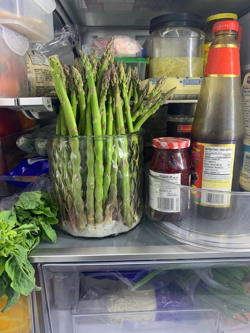 〖Three〗、用保鲜膜包好放冰箱冷藏。买多的芦笋可以用保鲜膜将其轻轻包裹起来,让其与空气隔离,放在冰箱保鲜层里面,一般这种方法保存期可以维持1个星期左右。用厨房纸巾包好,喷一点水放冰箱。