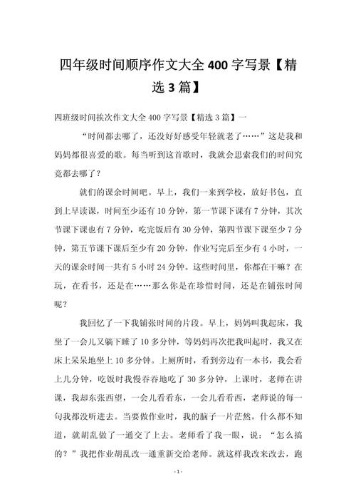 〖One〗、按照时间顺序写景作文篇1 正是秋高气爽的好日子,妈妈发动全家,带着我和外婆到公园去玩。一路上,大树那一张张发黄发红的叶子在空中飘舞着,好象一只只蝴蝶自由自在地翩翩起舞,又好像一个个可爱的小精灵在蔚蓝的天空下游荡。