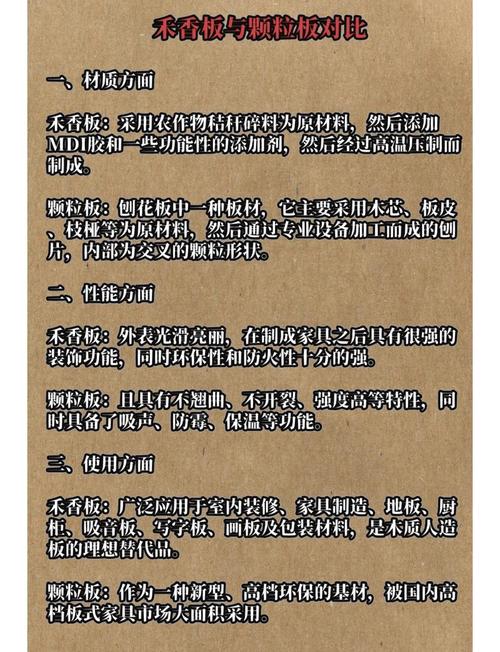 〖One〗、环保性能好:采用农作物材料制作,无毒安全,且使用的胶水不含甲醛,对人体无害。禾香板的缺点:硬度较高易崩边:在加工过程中可能因硬度高而导致崩边,或在切割、打孔时发生开裂,影响美观和使用。费用较高:相比其他普通板材,禾香板的费用较高,需要考虑装修成本。