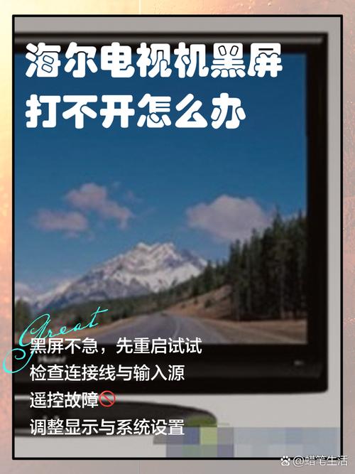 海尔液晶电视机出现黑屏情况时,可以尝试以下解决方法: 检查电源指示灯 确认电源线连接:首先检查彩电屏幕的电源指示灯是否明亮。如果不亮,可能是电源线未插好或松动,此时只需将电源线插好即可恢复正常连接。