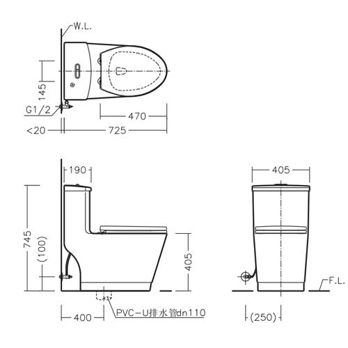 标准的马桶下水口尺寸通常为305mm和400mm两种,前排水和后排水都有相应的标准。 前排水马桶的下水口直径通常为305mm,这种直径适合于直径为310mm或315mm的排水管。后排水马桶的下水口直径通常为355mm或450mm,这种直径适合于直径为310mm或315mm的排水管。