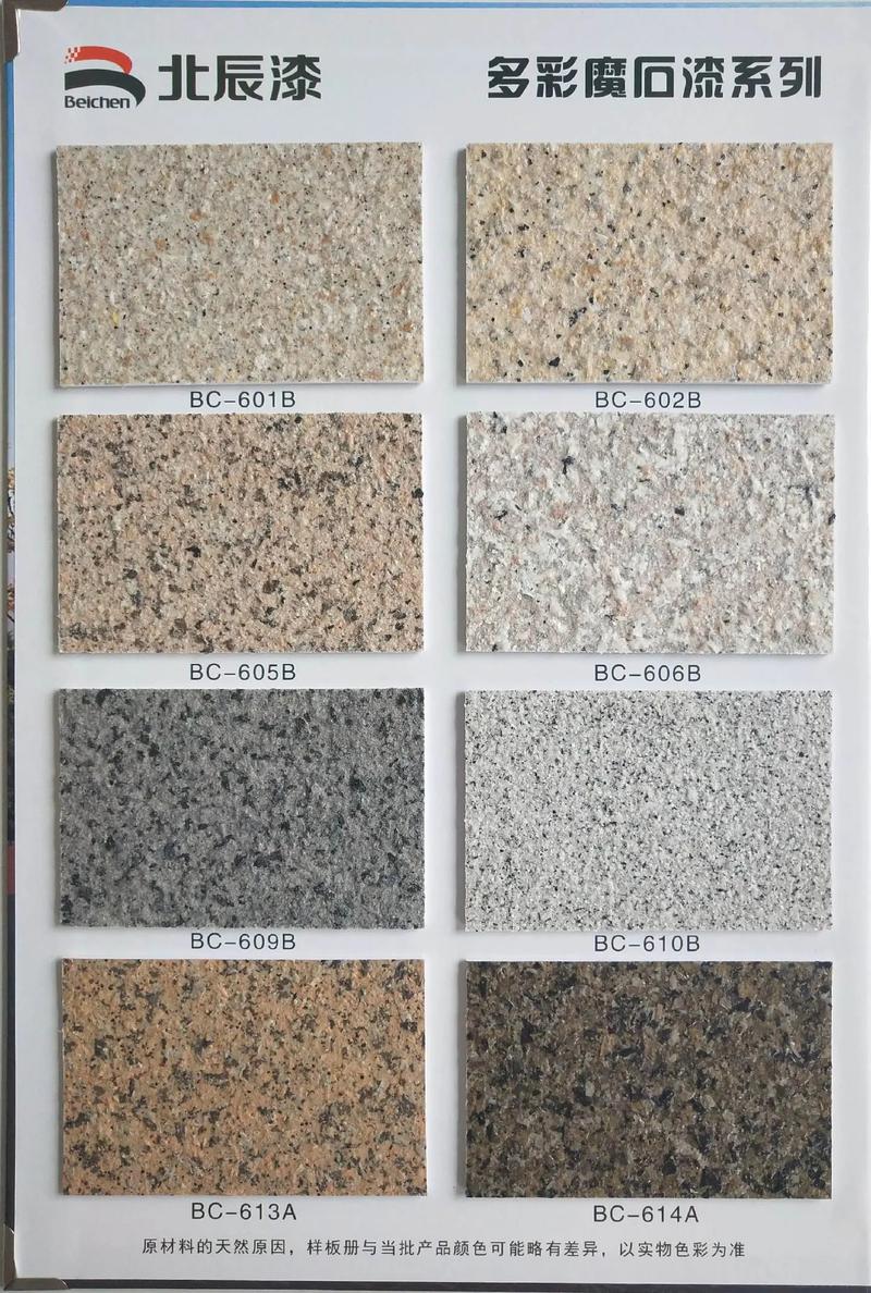 真石漆和水包水多彩涂料作为仿石涂料,在仿石质感上,真石漆要明显高于水包水。一方面真石漆颜填料采用的天然彩砂,涂层厚度一般为3mm左右,从硬度和厚度上非常接近于石材。“水包水”采用的是色浆,涂层厚度仅有0.3mm左右,仿石的硬度和质感都不及真石漆。