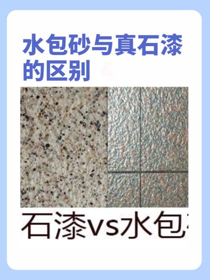 真石漆和水包水漆本质区别在于:材质上的不同:水包水漆是仿大理石的纹路,而真石漆是仿大理石的。体系对比:真石漆比水包水更成熟、稳定构成材料不同:真石漆为乳液+彩砂+助剂,水包水漆由乳液+由涂料配置的彩粒+助剂。