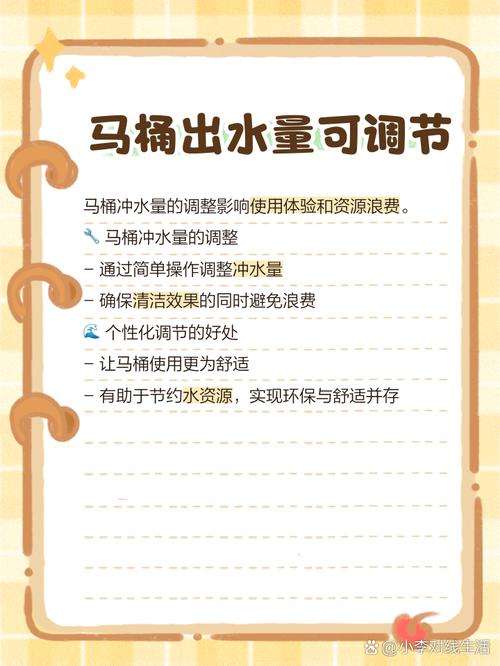 〖One〗、马桶水太小可以通过以下方式进行调节:调整水箱按钮:打开马桶盖,观察水箱盖上的两个按钮,一个用于小水量,另一个用于大水量。将两个按钮调整到底部以实现最大排水量。特别是全排水按钮,应调节至最底部,以确保冲大便时有足够的水量。半排水按钮可以调整到中间位置,因为冲小便时通常不需要过多的水。