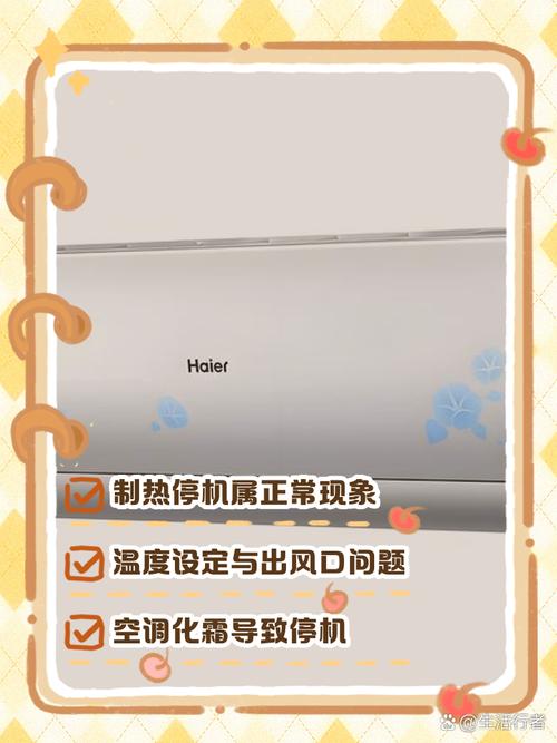 〖Three〗、海尔空调开启制热功能后不久就停机,可能有以下原因。室外温度过低会影响空调制热效果,空调可能会启动化霜程序,此时压缩机停机,化霜结束后会恢复制热。比如在极寒天气下,这种情况较为常见。空调滤网长时间未清理,会导致进风量不足,影响热交换效率,空调为保护自身会自动停机。