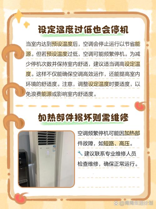 〖Three〗、空调缺氟也可能导致这种情况。氟利昂是空调制热的重要介质,如果系统中氟含量不足,空调的制热效果会变差,且可能出现运行一段时间后停机的现象。此外,空调的压缩机、风机等关键部件出现故障,如压缩机磨损、风机电机损坏等,也会使空调无法正常持续制热运行。