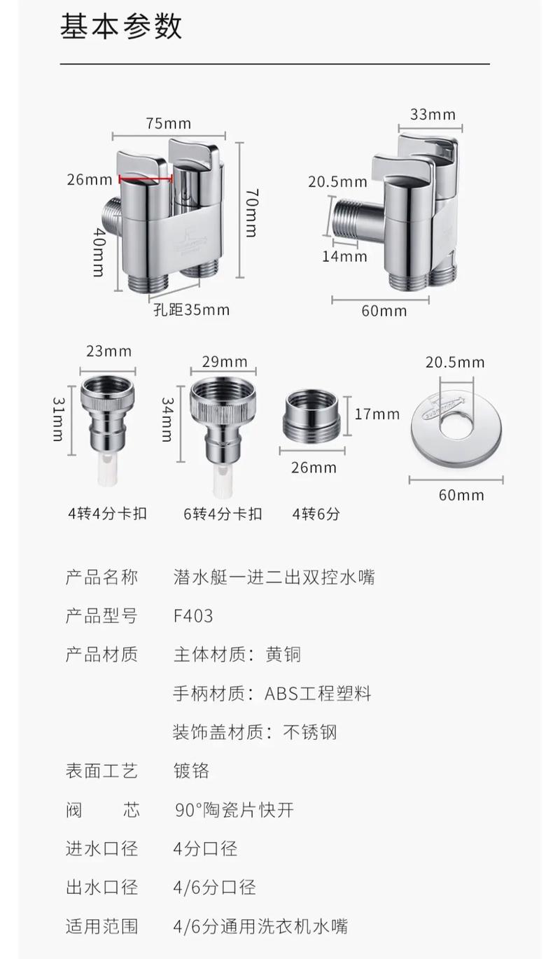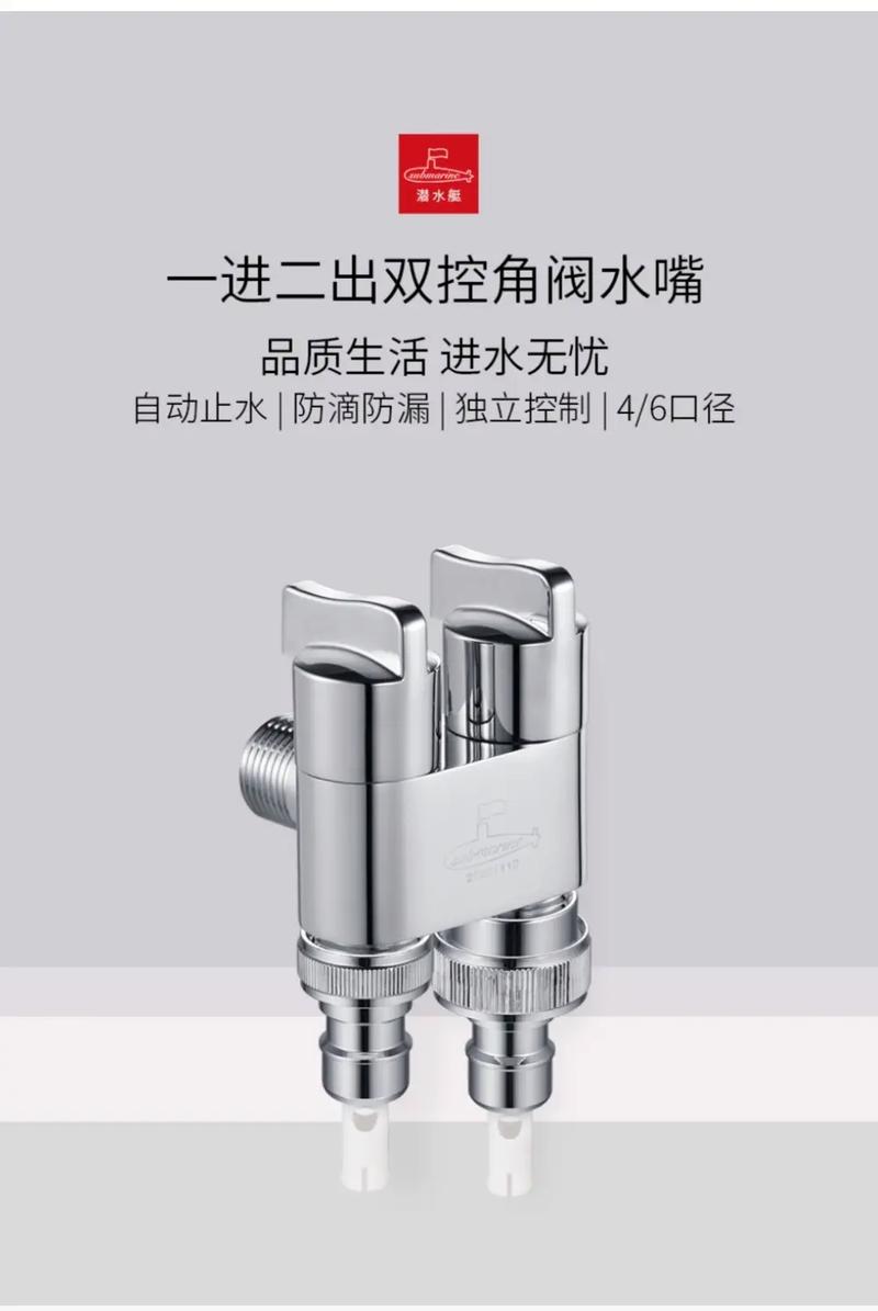 〖Two〗、控制水流:角阀通过旋转其手柄,可以轻松控制水流的开启和关闭,实现灵活的水流调节。紧急切断水源:在紧急情况下,如水龙头漏水或其他管道问题,可以通过关闭角阀来迅速切断水源,防止进一步的水损害。维修和更换方便:角阀的存在使得维修和更换水龙头等设备变得更加方便。