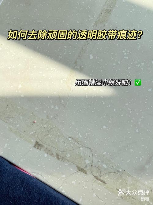 用肥皂水反复擦拭,可以去掉。还可以用粘性好的透明胶反复粘撕,去掉表面一些,然后再用电吹风吹,借助其他硬片类工具进行擦拭即可。还可以用风油精擦拭,将风油精涂在胶带上,浸润一会儿处理即可。或者用醋擦,将食用的醋浸润一会儿,然后再擦拭就可以。