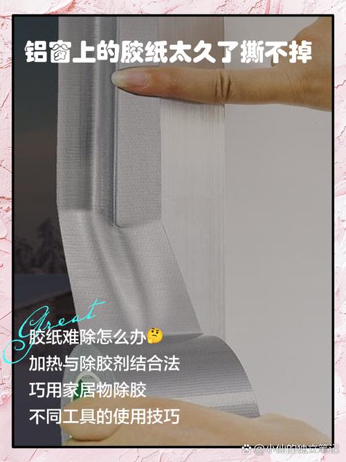 〖Four〗、如何有效去除铝合金窗户上的胶带痕迹?首先,可以尝试使用肥皂加少许氨水与松节油的混合液,这种方法能有效去除许多污物。其次,使用粘性好的透明胶带反复粘撕,可以帮助去除表面的一些痕迹。第三,用一点稀酒精或丙酮水轻轻擦拭,或者使用油漆稀料,也能达到去除胶带痕迹的效果。