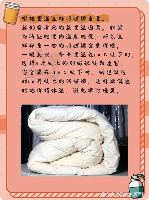斤的鹅绒被适用于0『1』0℃的室温环境。鹅绒被是一种使用鹅绒作为填充物的被子,它具有出色的保暖性能。当考虑被子适用于多少度时,主要取决于鹅绒的质量、羽绒填充量以及被子的厚度。具体分析如下:鹅绒是一种非常优质的保暖材料,具有较高的保温性能。一般来说,被子的保暖程度与羽绒填充物的重量成正比。