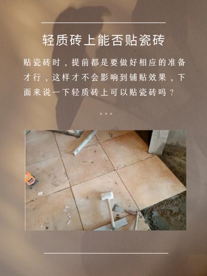 综上所述,轻质砖上可以贴瓷砖,但需注意施工质量和粘贴牢固度。