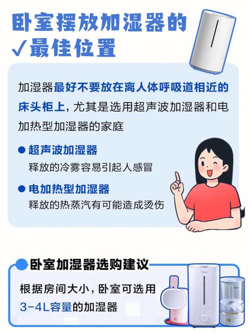 加湿器应放在室内湿度较低的位置最合适。以下是对加湿器放置位置的 靠近人体活动区域:加湿器的主要功能是增加室内湿度,改善居住环境。因此,放置在靠近人们经常活动的区域,如客厅、卧室等,能确保加湿器发挥的湿润效果直接作用于人体,使人们感受到舒适。