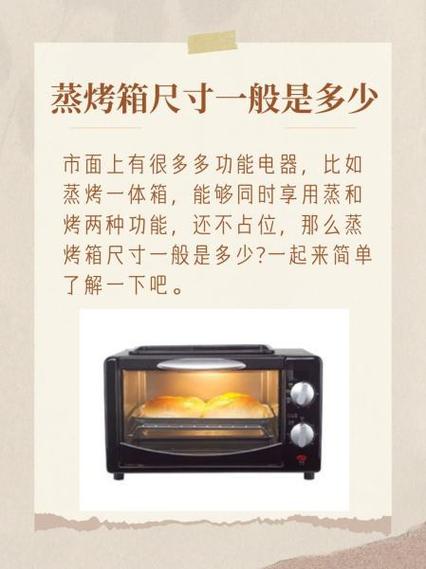 〖Six〗、普通蒸箱尺寸:一般为1750×1010×2200毫米,但消费者可以根据实际需求自由选取其他尺寸。嵌入式蒸箱尺寸:常规尺寸为595×590×560毫米,不过,因品牌和设计不同,可能会存在一些差异。嵌入式电烤箱的尺寸也大致相同。家用烤箱尺寸选取:一般3口之家可以选取18L23L的烤箱。