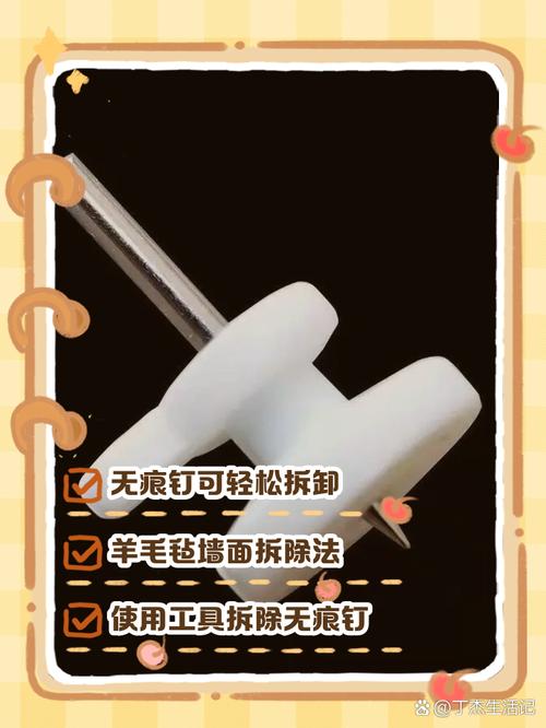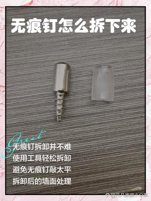 〖Four〗、要从墙上取走无痕钉,可以根据无痕钉的类型采取不同的方法,具体如下: 螺丝无痕钉: 直接使用螺丝刀:将螺丝刀插入无痕钉的螺丝头中,慢慢旋转并拧出无痕钉。 机械力硬砸进去的无痕钉: 使用起钉锤:将起钉锤的尖端对准无痕钉的钉钩部分,用力将其锤出。